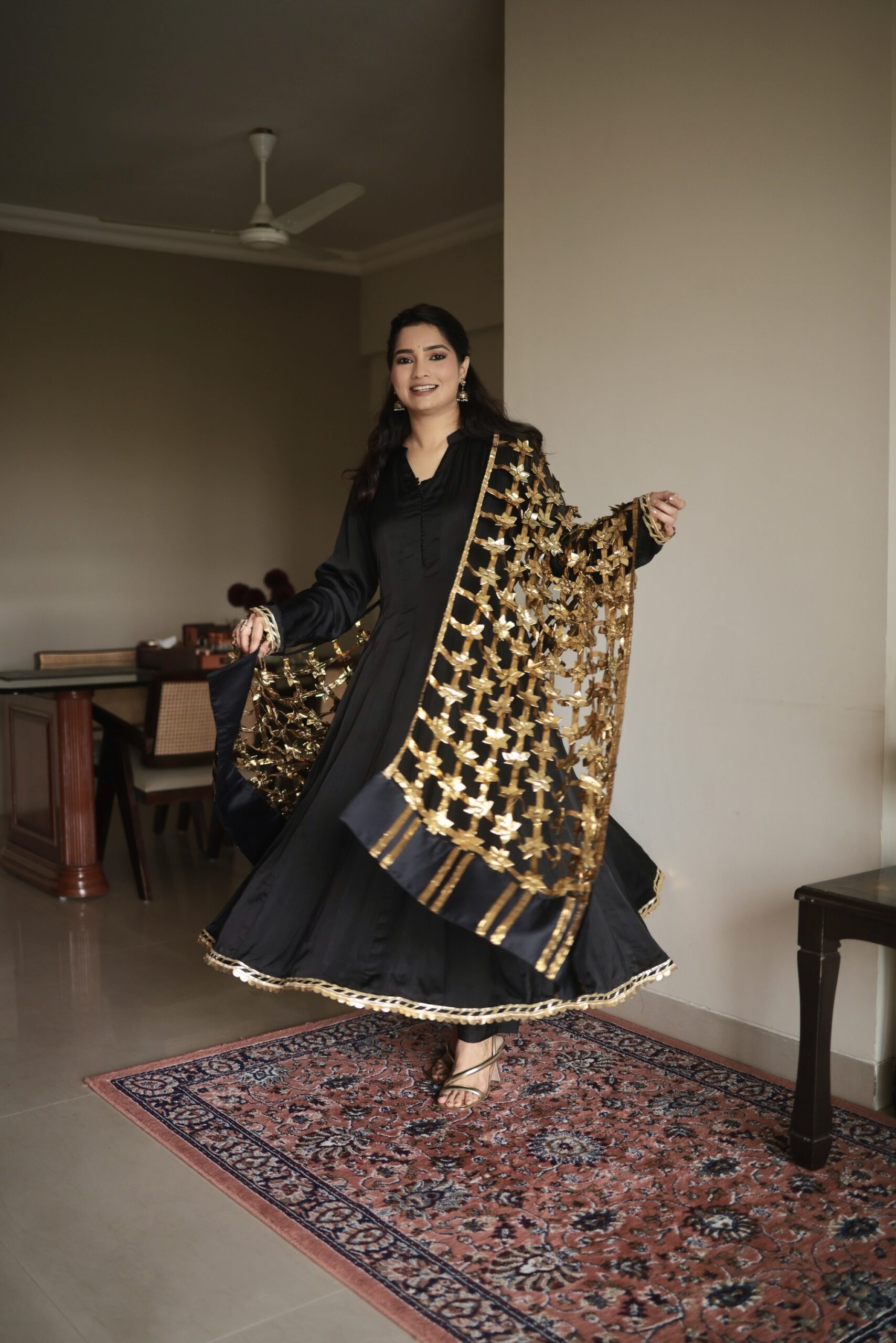 •Color: Jet Black with gold dupatta